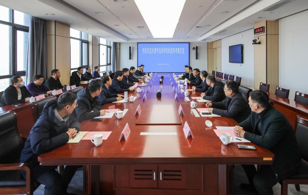 1月10日上午,东营市技师学院党委书记崔建华、党委副书记、院长崔相国一行15人到我院考察交流。学院党委副书记韩瑞东,党委委员、办公室(统战部)主任(部长)任培华会见客人,科技处、基建处、信息工程学院等相关部门负责同志陪同考察。 韩瑞东对崔建华一行的到来表示诚挚的欢迎,与来访客人共同观看了学院宣传片,并简要介绍了学院办学历史、基本情况、近年来发展建设取得的办学成果。相关部门负责同志分别就实训基地建设、社会培训、产教融合等方面的经验和做法与客人进行了交流。 崔建华在了解了学院有关情况介绍后,对我院近年来发展建设取得的成绩给予了赞赏,并介绍了东营市技师学院的基本情况,希望两校在未来发展中进一步加强合作交流,共促发展。 座谈结束后,崔建华一行参观了滨海校区校园和实验实训室。