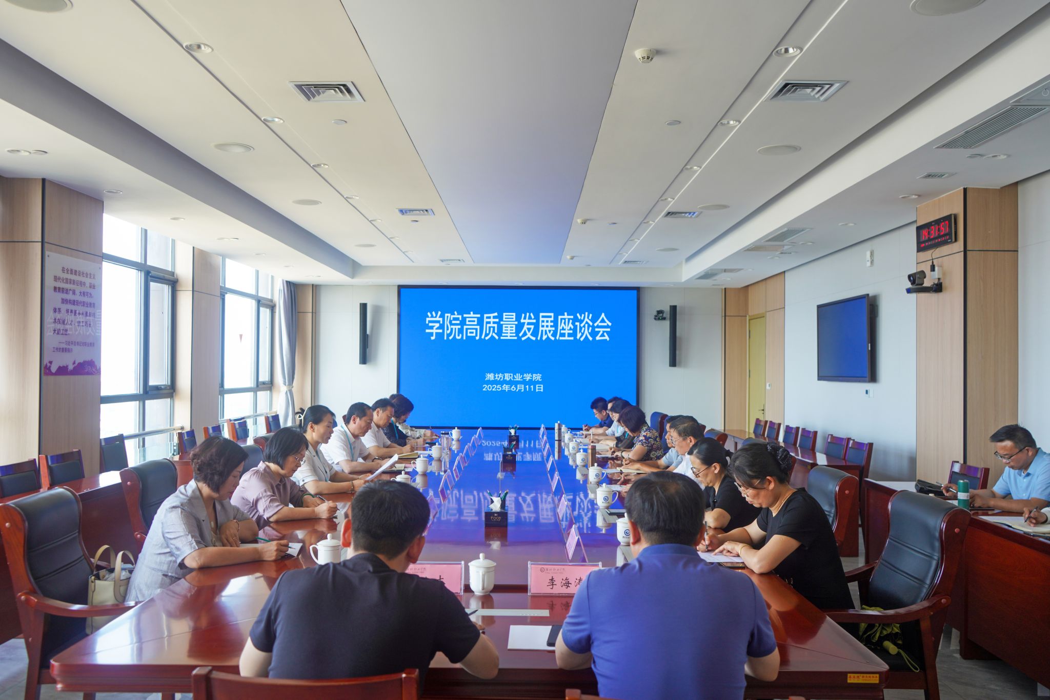 6月11日下午,学院在滨海校区综合楼1119会议室召开高质量发展座谈会,为即将召开的中国共产党潍坊职业学院第二次代表大会凝聚智慧、汇聚力量。学院党委书记王浩,党委副书记贺志强,党委委员、办公室(统战部)主任(部长)刘志艳,以及统战成员代表、学术委员会代表、教学工作委员会代表和一线教师代表等参加会议。会议由贺志强主持。 王浩在讲话中充分肯定了学院过去七年的工作成绩,向为学院发展付出努力的全体师生员工表示感谢。他指出,今后五年是学院加快高质量发展、创建高水平职业技术大学的战略机遇期,“建高升本”是当前和今后一段时间的重大战略机遇。他提出三点希望和要求:一是期望统战成员凝心聚力,深入学习贯彻习近平新时代中国特色社会主义思想,以学院第二次党代会为新起点,积极融入学院发展大局,充分发挥自身联系广泛的优势,为学院争取更多外部支持,广泛宣传学院发展成果;二是希望广大教师团结一心、携手奋进,积极投身于学院高质量发展的实践中,为推动学院各项事业进步贡献智慧与力量;三是要求各部门强化统筹协调职能,深入了解教职工的实际需求,搭建高效优质的服务平台,切实增强教职工的幸福感与归属感,精心做好服务学院发展、服务区域经济建设、服务中国式现代化的“三篇文章”。 贺志强在总结讲话中强调,办公室要认真梳理、吸纳代表们的意见建议,进一步修改完善党代会报告。全体与会人员要以本次座谈会为新起点,统一思想和行动,以“崇实尚行 敢于争先”的潍职精神,锚定“建高升本”目标,共同开创学院高质量发展的崭新局面。 座谈会上,刘志艳介绍了学院发展情况和今后工作思路目标及总体安排。与会代表围绕《中国共产党潍坊职业学院第二次代表大会工作报告(征求意见稿)》积极发言,结合自身工作实际,从人才培养、专业建设、科研创新、社会服务、内部治理等方面提出了富有建设性的意见和建议,充分体现了对学院发展的高度关注和强烈的主人翁意识。 本次座谈会的召开,为学院第二次党代会的顺利召开奠定了坚实基础,也为学院未来五年的发展凝聚了共识、明确了方向。学院将以此次会议为契机,团结带领全体师生员工,真抓实干、攻坚克难,奋力谱写学院高质量发展的新篇章。